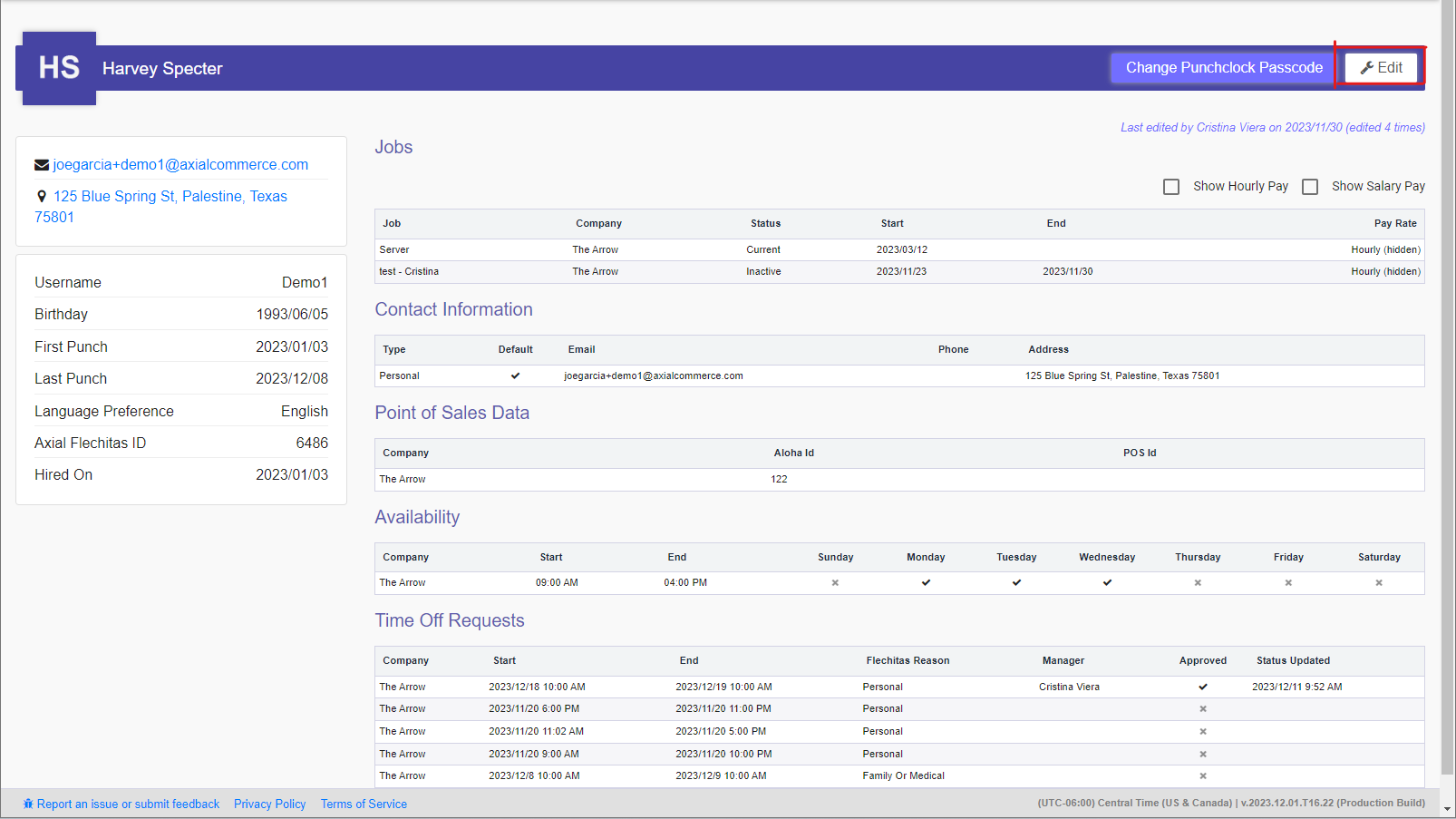 5. Edit Mode: Locate the edit button in the top, right corner and select it in order to bring up the team member's profile.