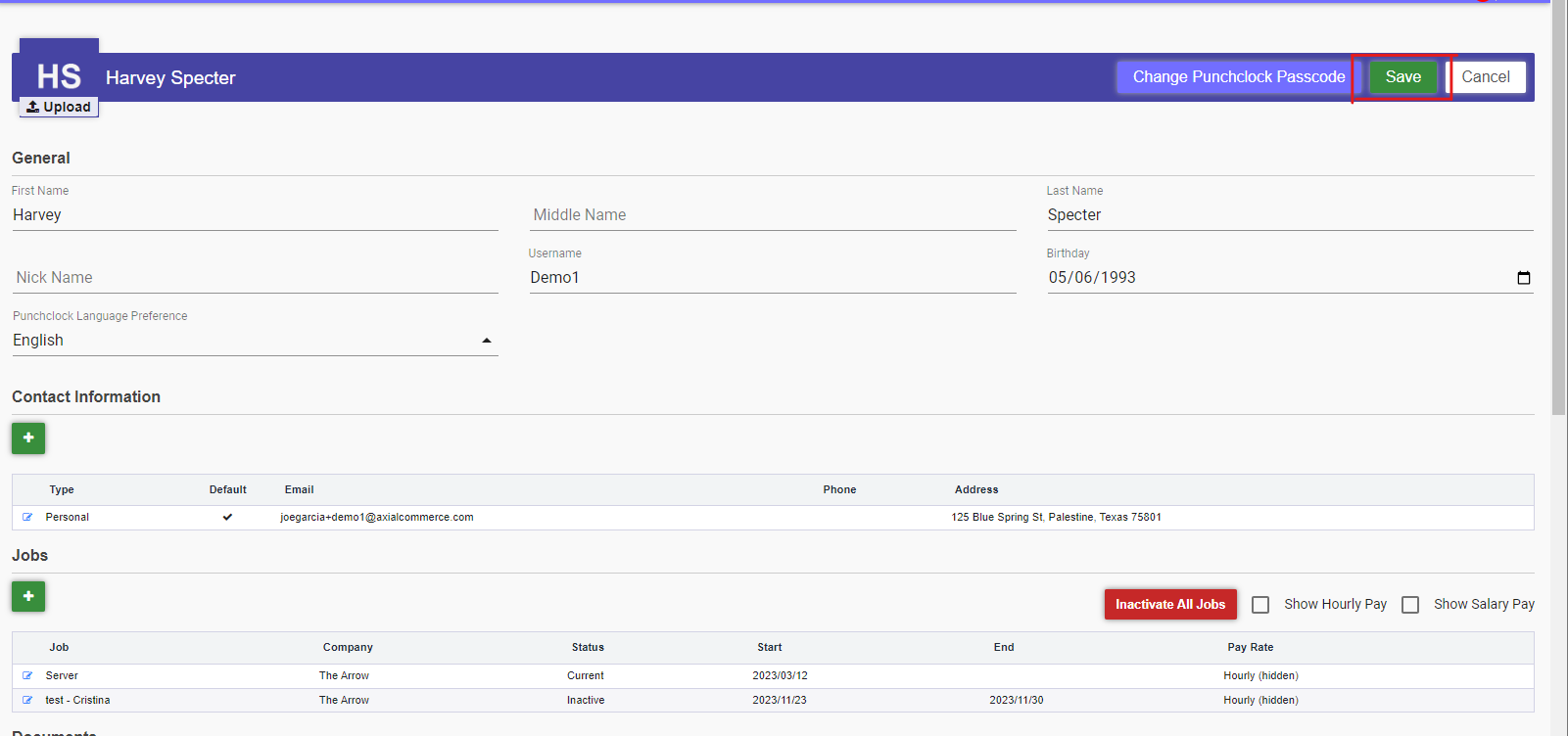 9. Save Changes: You're almost done! After clicking Save within the time off modal itself, you then must navigate to the top of the employee profile and select Save once more.