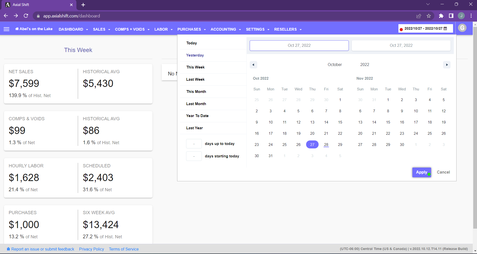 5. Finally, select the date or time frame you need on the calendar located on the top right corner of the page and hit "Apply".