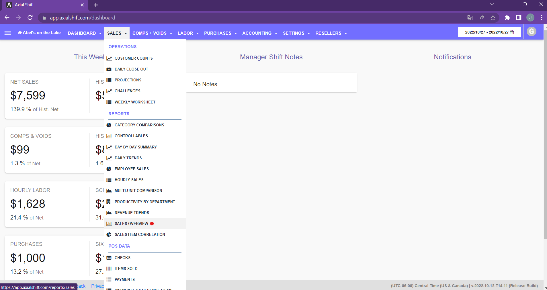 If you want to review your sales for an specific day or time frame you need to: